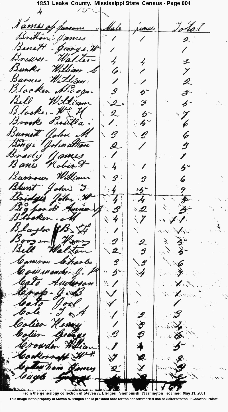 Page 4 1853 Census provided by Steven Bridges