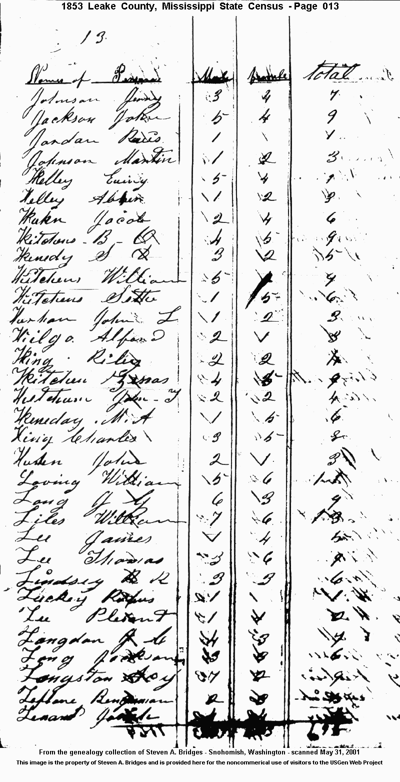 Page 13 1853 Census provided by Steven Bridges